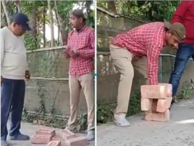 एक हाथ से पांच ईंटें उठाने का चैलेंज, विजेता को 2 हजार का इनाम!लोगों को पसंद आई ये अनोखी ट्रिक (इमेज- सोशल मीडिया)