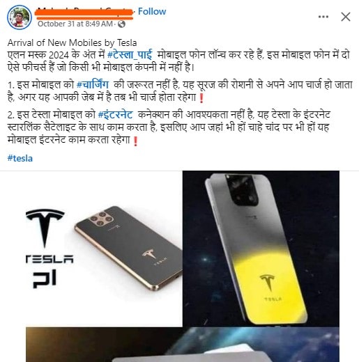 यदि आप भी टेस्ला के किसी ऐसे फोन के इंतजार में हैं तो बता दें कि न तो कभी एलन मस्क ने और न ही उनकी कंपनी टेस्ला के किसी अधिकारी ने इसकी पुष्टि नहीं की है. हालांकि पोस्ट में ऐसी बातें लिखी गई हैं, जो लोगों को सच लग भी सकती हैं. जैसे कि फोन सोलर चार्जिंग तकनीक से चार्ज हो सकेगा. दरअसल, टेस्ला पहले से ही सोलर पैनल्स बनाता है, तो लोग मान सकते हैं कि फोन के साथ एक ऐसा कवर भी आए जो सोलर चार्जिंग की सुविधा दे. दूसरी बात भी इसी तरह फेंकी गई है. क्योकिं अमेरिका, कनाडा, इंग्लैंड, जर्मनी, फ्रांस, ऑस्ट्रेलिया और न्यूजीलैंड जैसे देशों में स्टारलिंक सैटेलाइट से इंटरनेट मुहैया कराया जा रहा है. यह सफल भी रहा है. ऐसे में भरोसा करना आसान हो जाता है.