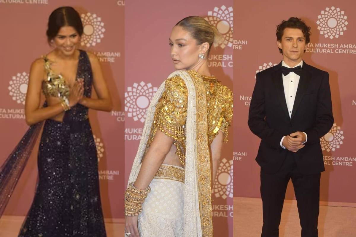 नीता मुकेश अंबानी कल्चरल सेंटर (NMACC) के फैशन गाला में शनिवार रात इंटरनेशनल सेलेब्स ने हिस्सा लिया. इसमें मार्वल सिनेमैटिक यूनिवर्स की स्पाइडर-मैन फिल्मों के हीरो टॉम हॉलैंड और हीरोइन जेंडया शामिल हुए. इसके अलावा अमेरिकी मॉडल गिगी हदीद भी शामिल हुईं. तीनों सेलेब्स ने भारतीय परंपरा को फॉलो करते हुए अपना जलवा बिखेरा.