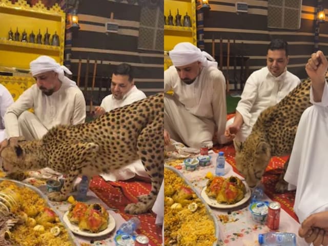 वायरल हो रहे वीडियो में देखा जा सकता है कि शेखों का ग्रुप बिल्कुल शाही अंदाज में बैठकर तरह-तरह के लजीज पकवानों का आनंद ले रहा होता है. उनके आसपास ठाठ-बाट की आलीशान चीज़ें दिखाई दे रही हैं. इसी बीच उनके पास एक लेकिन तभी वहां अचानक एक चीता आ धमकता है. दिलचस्प ये है कि यहां पर चीता खाने की खुशबू सूंघते हुए आता है. वीडियो देखकर आप डर जाएंगे लेकिन वहां मौजूद लोगों को मानो इससे कोई फर्क ही नहीं पड़ा. वे इसका भी लुत्फ उठाते हुए दिखे.