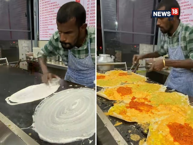 वायरल वीडियो में आप देख सकते हैं कि शख्स सबसे सबसे पहले तवे पर डोसे का बैटर डालता है और उसे कटोरी से जल्दी-जल्दी घुमाकर गोल करता है. उसके बाद वो उसमें आलू और अन्य चीजों डालता है. फिर जैसे ही डोसा पक जाता है, वो उसे जल्दी-जल्दी निकालकर ग्राहक की प्लेट में सर्व कर देता है. ये सब कुछ करने में उसे चंद मिनट से ज्यादा नहीं लगता.