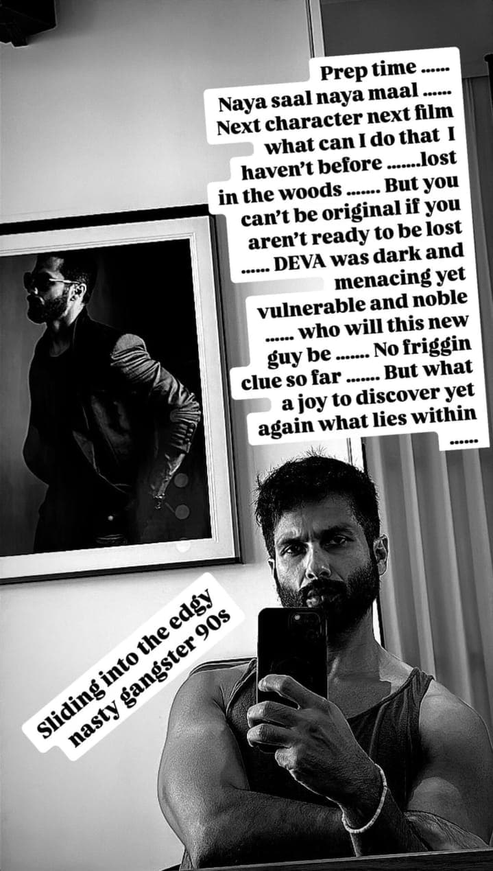 शाहिद कपूर ने आगे लिखा, “देवा का किरदार गहरा, खतरनाक, लेकिन फिर भी नाज़ुक और शालीन है… ये नया किरदार कौन होगा… अभी तक कोई अंदाज़ा नहीं… लेकिन खुद को फिर से तलाशने का ये सफर कितना खूबसूरत है!” इसके बाद उन्होंने अपनी अगली फिल्म के किरदार को लेकर इशारा करते हुए लिखा, “90 के दशक के खतरनाक गैंगस्टर में ढल रहा हूं.”