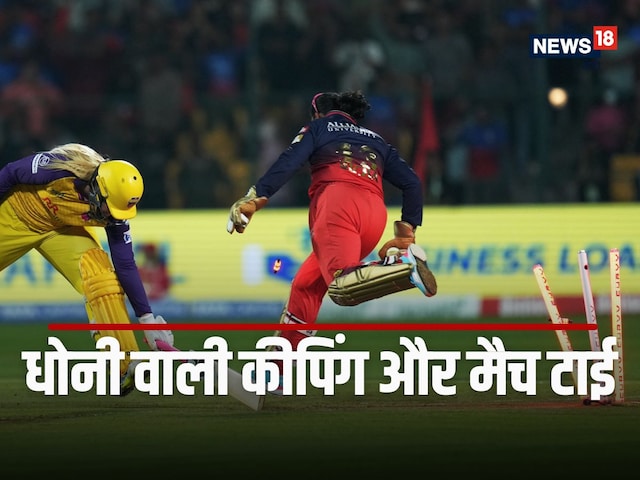 19.5 ओवर के बाद स्कोर टाई हो गया था और यूपी वारियर्स को आखिरी गेंद पर एक रन बनाने की जरूरत थी. रेणुका सिंह ने ऑफ स्टंप के बाहर गेंद फेंकी, जिसे क्रांति गौड़ छू भी नहीं सकीं. नॉन स्ट्राइकर सोफिया एकलस्टन ने बाई रन चुराने की कोशिश की लेकिन विकेकीपर ऋचा घोष उनसे तेज निकलीं. ऋचा घोष ने गेंद पकड़ते ही एमएस धोनी की तरह तेज दौड़ लगाई और गिल्लियां बिखेर दीं. इस तरह यूपी वारयर्स की टीम 180 रन पर ऑलआउट हो गई.