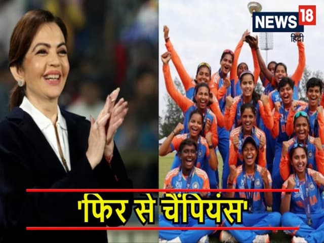 नई दिल्ली. इंडियन प्रीमियर लीग की फ्रेंचाइजी मुंबई इंडियंस की मालिक नीता अंबानी ने भारतीय टीम को आईसीसी अंडर-19 महिला टी20 विश्व कप 2025 का खिताब जीतने पर बधाई दी है. निकी प्रसाद की कप्तानी में भारतीय टीम ने (रविवार) 2 फरवरी को फाइनल में दक्षिण अफ्रीका को 9 विकेट से हराकर लगातार दूसरी बार यह खिताब जीता. जी. त्रिशा ने 15 रन देकर 3 बल्लेबाजों को आउट किया फिर 44 रन की नाबाद पारी खेल टीम को जीत तक पहुंचाया.