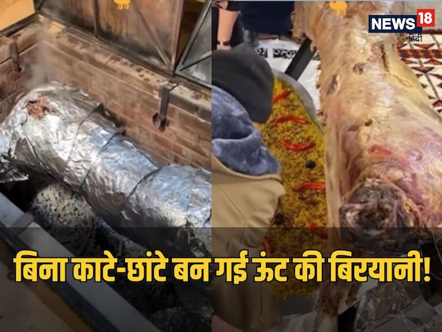 इतने बड़े ऊंट की स्किन को छीलकर उसे भट्टी के अंदर डाल दिया गया था. बीच से मांस में कुछ कट्स लगाए गए थे ताकि मांस अंदर तक पक जाए. उसके बाद कुछ मसाले डालकर ऊंट को सिल्वर फॉयल से ढंक दिया गया था. इसे बाहर निकालने के लिए बुलडोजर की मदद ली गई. क्रेन के हुक से ऊंट बाहर निकला. इसके बाद सिल्वर फॉयल को हटाया गया और नीचे पके हुए चावल रखकर बिरयानी परोसी गई.
