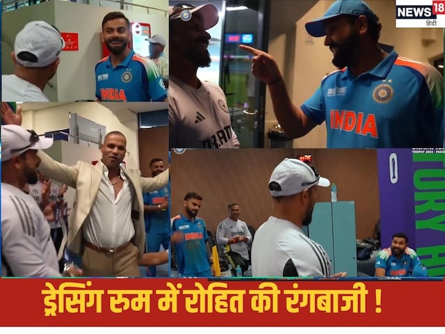 नई दिल्ली. पाकिस्तान के खिलाफ जीत मिले तो जश्न मनाना आम सी बात है और अक्सर ड्रेसिंग रुम की जो तस्वीरें बाहर आती है वो इस बात की तरफ इशारा करती है कि जीत कितनी खास रही है . दुबई में पाकिस्तान के खिलाफ मिली जीत के बाद रोहित शर्मा ने फील्डिंग कोच टी. दिलिप को पकड़ लिया और बहुत ही मजेदार अंदाज में उनको कुछ ऐसा समझाया कि ड्रेसिंग रूम में मौजूद हर कोई हंसने लगा.