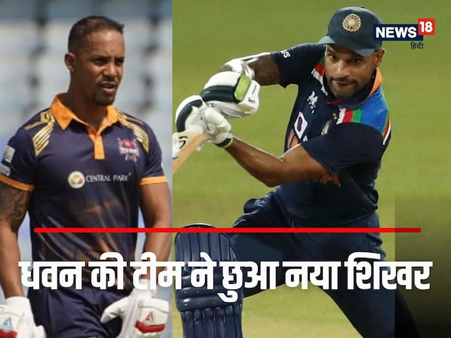 Legend 90 league: शिखर धवन की टीम दिल्ली रॉयल्स ने लीजेंड 90 लीग में महज 15 ओवर में 195 रन ठोक डाले. इसके साथ ही उसने लीग का सबसे बड़ा स्कोर अपने नाम कर लिया.