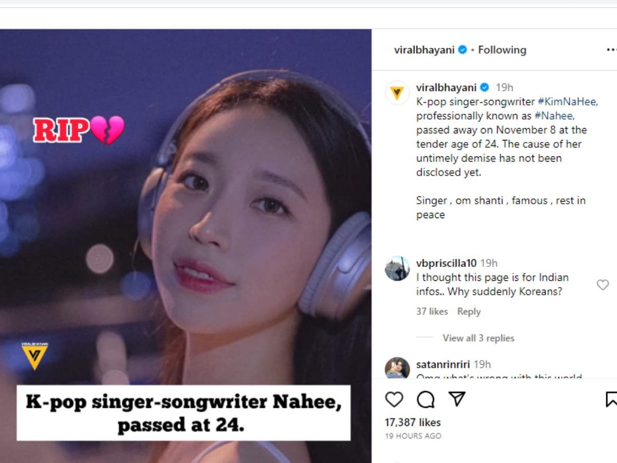 साउथ कोरिया सिंगर किम नाही की निधन के कारण के बारे में न तो उनकी एजेंसी और न ही उनके परिवार ने कोई आधिकारिक बयान जारी किया है. नाही का अंतिम संस्कार प्योंगटेक, ग्योंगगी-डो में सेंट्रल फ्यूनरल हॉल में होगा. जुलाई में नाही ने अपना इलेक्ट्रॉनिक पॉप ट्रैक ‘रोज’ रिलीज किया था.