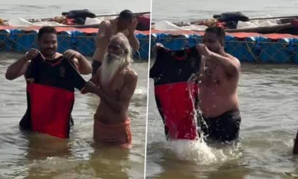 RCB का जबरा फैन, IPL 2025 से पहले पहुंचा महाकुंभ, जर्सी को लगवाई डुबकी; देखें VIDEO