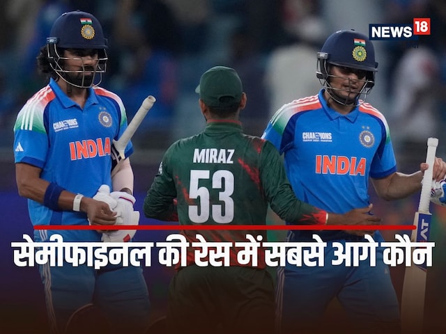 Champions trophy Point desk: भारत ने बांग्लादेश को हराकर चैंपियंस ट्रॉफी के सेमीफाइनल की रेस में बढ़त बना ली है. भारत ग्रुप ए में दूसरे नंबर पर है.