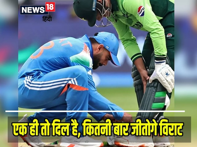नई दिल्ली. पाकिस्तान के खिलाफ दुबई इंटरनेशनल स्टेडियम में जारी चैंपियंस ट्रॉफी 2025 के मुकाबले के दौरान जहां एक ओर दोनों टीमों के बीच एक शानदार मैच देखने को मिला. वहीं, इस मुकाबले में विराट कोहली (Virat Kohli) ने अपनी स्पोर्ट्समैनशिप से सभी फैन्स का दिल भी जीत लिया. विराट बीच मुकाबले में युवा पाकिस्तानी गेंदबाज नसीम शाह के जूतों के फीते बांधते हुए नजर आए. पाकिस्तान की बैटिंग के दौरान किंग कोहली पर पहले से ही हर किसी की नजरें थी. कैमरामैन विराट की हर एक मूवमेंट को कैप्चर करने की कोशिश कर रहा था. इसी बीच नॉन-स्ट्राइकर एंड पर मौजूद नसीम शाह ने कोहली से अपने जूतों के फीते बांधने का अनुरोध किया. विराट ने भी इस युवा तेज गेंदबाज की मदद करना शर्मिंदगी का काम नहीं समझा. उन्होंने 22 साल के इस युवा बॉलर नसीम के जूते के फीते बांध दिए. इस वक्त सोशल मीडिया पर विराट के इस दिल को छू लेने वाले कदम की तस्वीरें वायरल हो रही हैं.